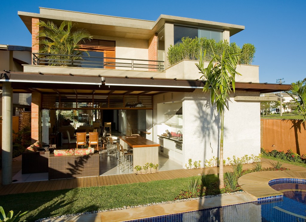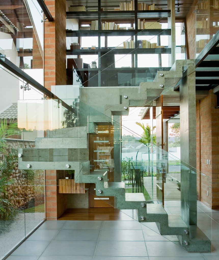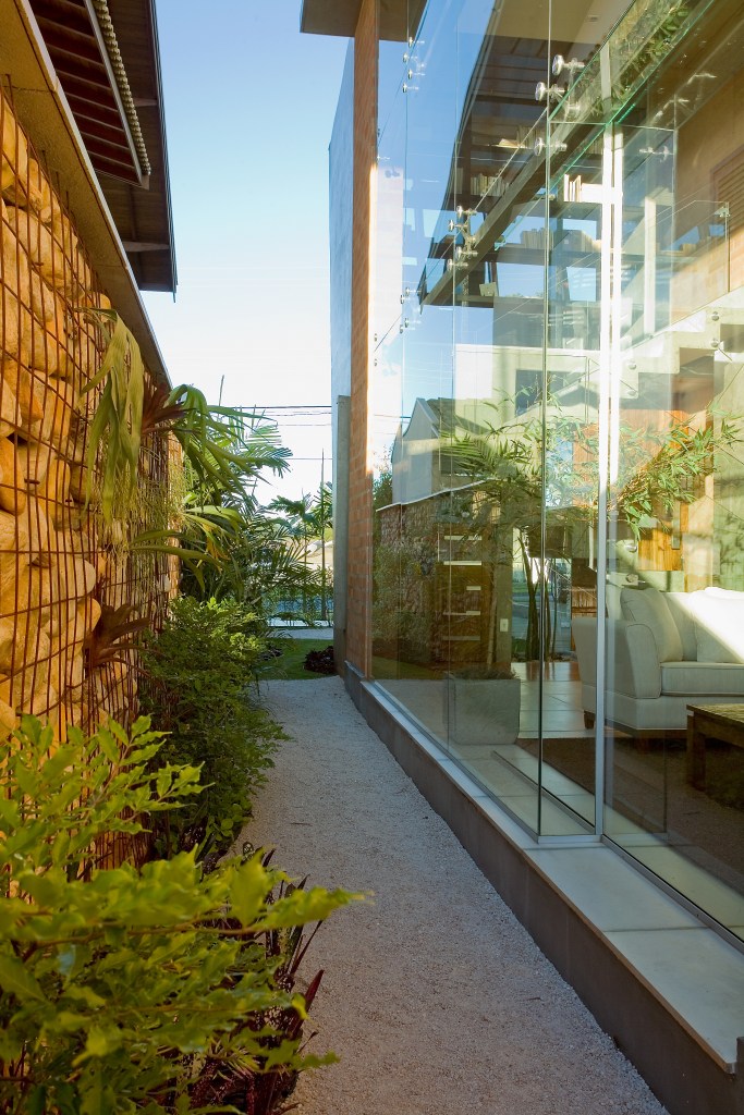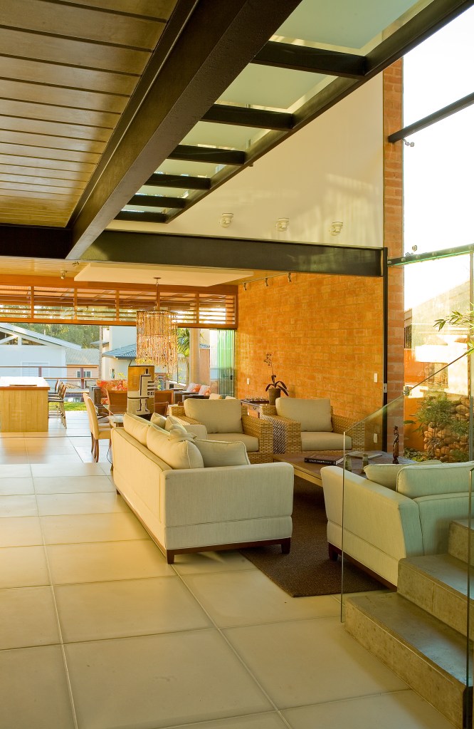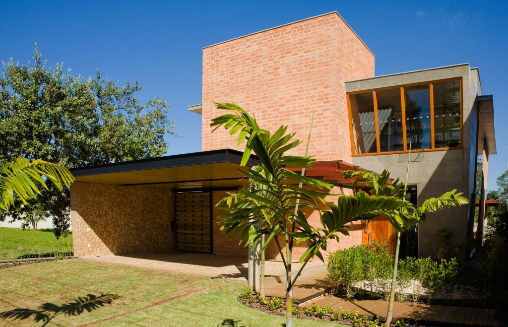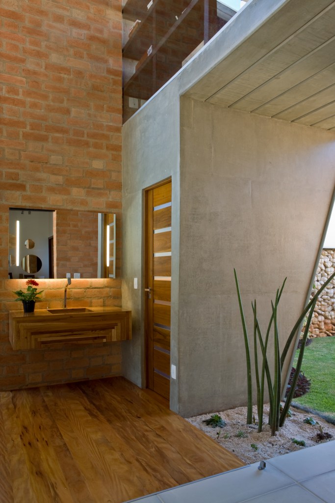 Com telhado embutido, esta casa combina tijolinhos aparentes e cimento queimado, criando uma fachada moderna e aconchegante. A parede inclinada em cimento valoriza a vista do escritório, enquanto um pergolado de madeira com vidro ilumina a entrada. A garagem se destaca pela viga metálica perimetral, reforçando o design contemporâneo. No interior, laje painel, acabamentos em cimento queimado e iluminação em trilho criam um ambiente clean e sofisticado. A área gourmet, com deck estreito e piscina de ladrilhos azuis, proporciona um espaço elegante para lazer. Um jardim vertical na lateral integra a natureza ao projeto, unindo funcionalidade e estética de forma harmoniosa.